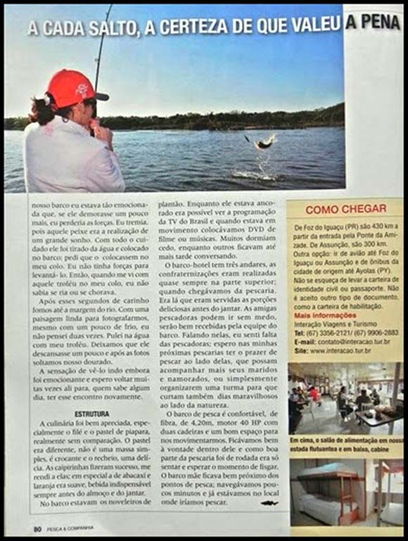 Segue um pouco sobre alguns dos meus trabalhos e entrevistas feitas por colegas jornalistas. Trabalhos feitos nas horas de folga, a pesca e o turismo não são minha profissão.