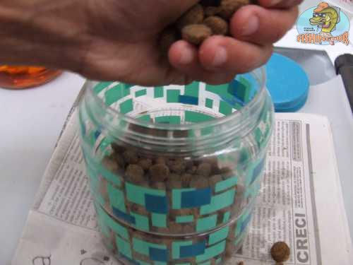 Agora você já pode guardar a sua ração em um pote bem fechado. Mantendo em local fresco e arejado, a ração pode durar até três meses. Eu prefiro fazer este processo uns 3 dias antes da pescaria para que a ração não fique tão úmida.