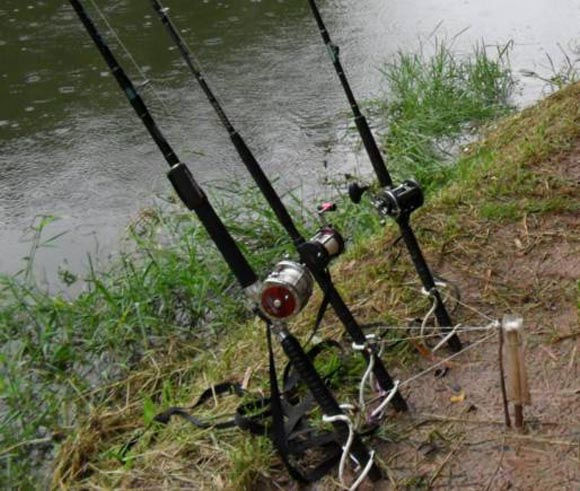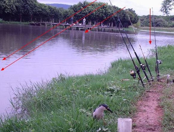 Quando em um quiosque ou no seu ponto de pesca, você deve procurar observar a geografia do ponto, ou seja, se existem estruturas, entradas no barranco, vegetação flutuante, etc. Dispor as varas próximas uma das outras, normalmente coloco duas iscas, uma viva e outra morta bem perto uma da outra, 2 ou 3 metros da margem e perto de uma vegetação ou estrutura e uma terceira isca um pouco mais para o meio e as vezes até um pouco mais distante. Desta forma, nunca enrosquei ou provoquei qualquer inconveniente para o pesqueiro ou colegas. Importante, como as iscas estão perto do barranco, é importante não ficar andando por perto, para não afugentar os peixes menores e ate mesmo a chegada dos grandes peixes.
