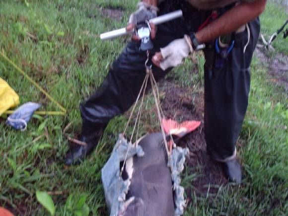 Para não machucar o peixe, o ideal é usar um pano grosso com umas 4 a 6 amarras, formando uma cesta (berço), para o peixe, mas na falta deste, pode-se usar um passaguá grande, passando o gancho da balança pelo arco do mesmo, tomando cuidado para não machucar o peixe.