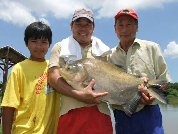 Logo pela manhã começamos usando apenas as miçangas de 10 a 40cm de profundidade e apenas pequenos pacus e tambacus foram fisgados, foi então que comecei a usar uma ração na pinga no lugar da miçanga e os resultados foram totalmente diferentes.