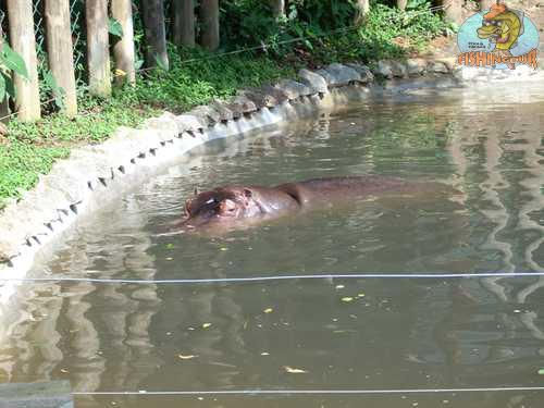 Outro peso pesado que habita o Zoo é o Hipopótamo (Hippopotamus amphibius). Animal africano, chega a pesar mais de 3 toneladas e vive até 40 anos. Ele fica isolado bem próximo a via em um pequeno lago.