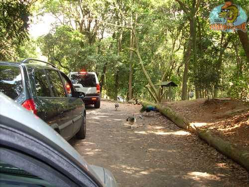 Neste trecho você pode deixar os vidros abertos e pode alimentar os animais com ração que é vendida dentro do parque. O Pavão Azul (Pavo cristatus) tem uma beleza fora do comum. Eles chegam bem perto do carro para comer a ração.