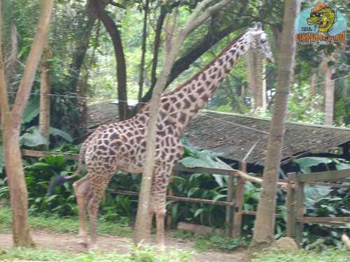 A Girafa (Giraffa camelopardalis) chega a viver 25 anos. É um animal da África. Aqui no Zoo ele vive solto e as vezes ele circula entre os carros.