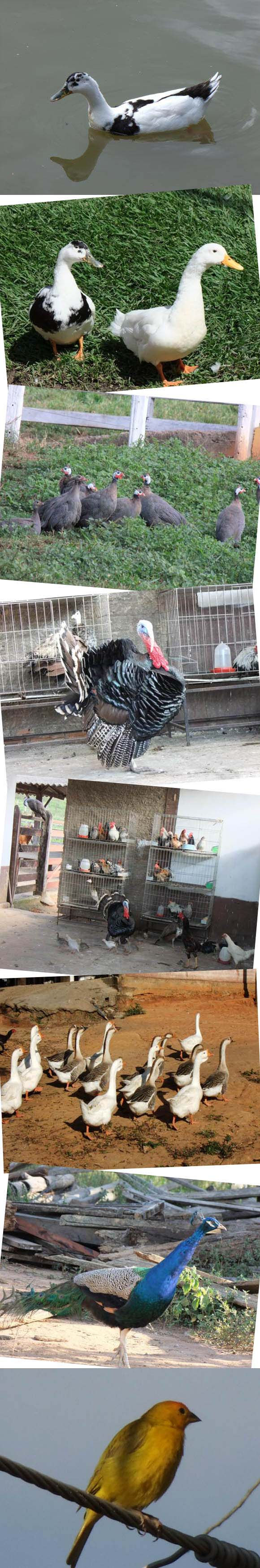 A Fazenda Paraná também desenvolve a criação de pequenas galinhas para venda, visitamos o galinheiro e apreciamos de perto a beleza e o colorido de cada animal.