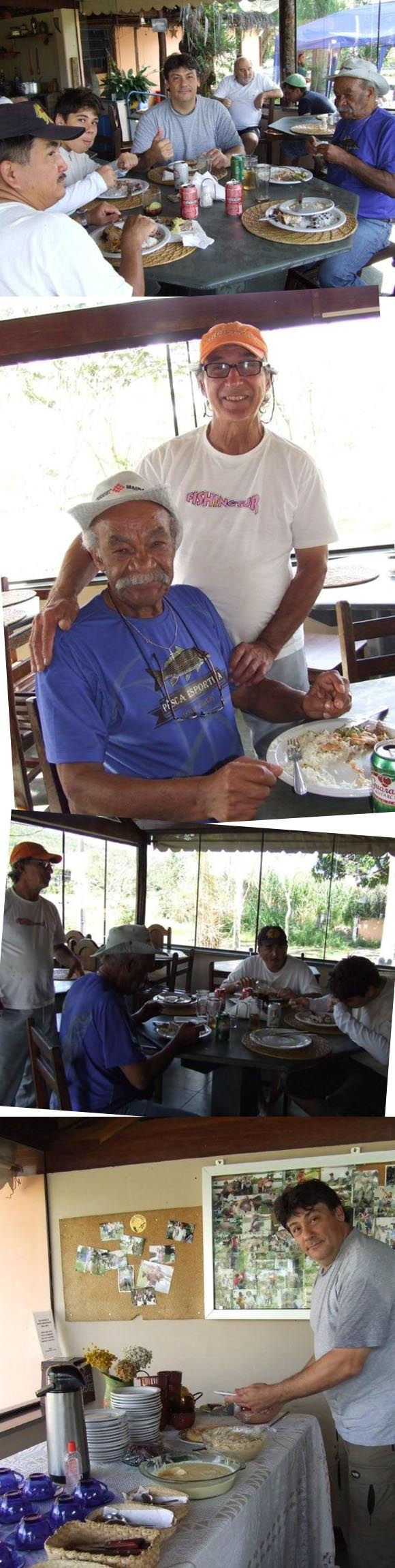Rapidamente iniciamos a montagem dos equipamentos e em menos de 30 minutos estávamos com as linhas dentro d’água, a procura dos Gigantes que habitam os Lagos do Pesqueiro Quatro Estações, mas os peixes nada queriam com nossas iscas e por volta das 08:00 h., resolvemos apreciar o bom café da manhã servido no local.