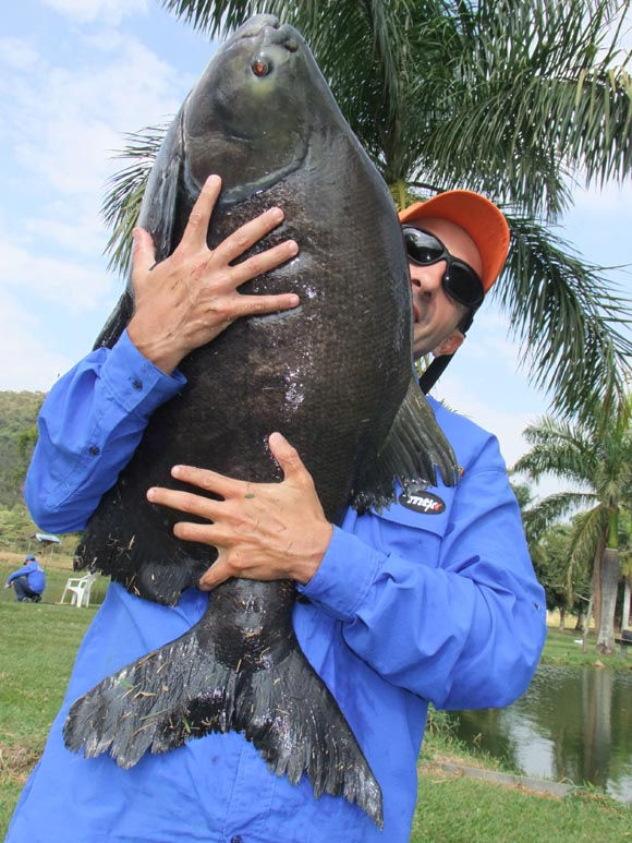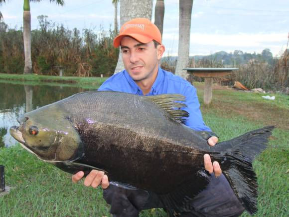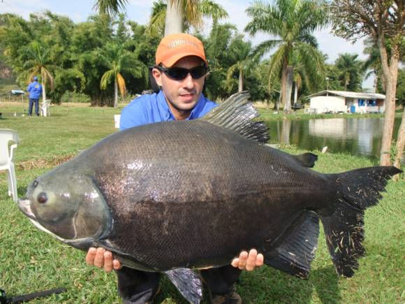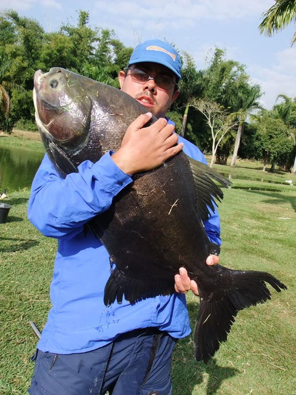 Era uma briga forte e pesada, tínhamos a certeza de ser um grande exemplar, o que me motivou a ter mais calma e cautela durante a briga até que o gigante tambacu encostou na margem e foi retirado com o passaguá.