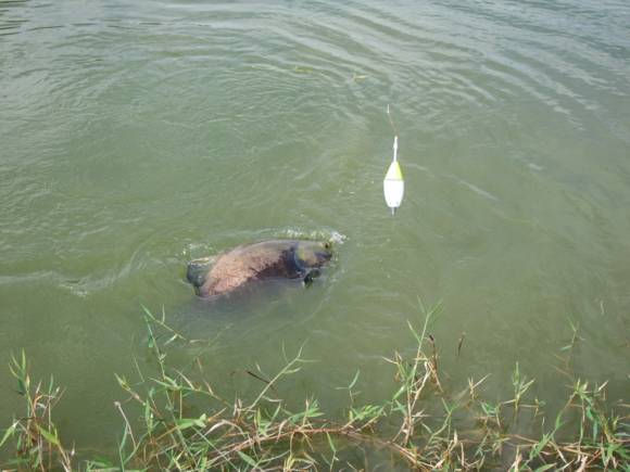 Logo cedo, usando a tradicional Ração Labina em um chicote de 40cm na bóia torpedo, fisguei um valente tambacu no lago da ilha.