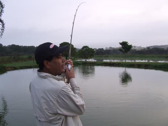 Obstáculo vencido, continuamos a nossa viagem curtindo uma boa música e um bom bate-papo entre amigos e por volta das 22h00min h., chegamos ao nosso destino e fomos muito bem recepcionados pelo Ezequiel que agora está gerenciando o Hotel Fazenda Quatro Estações e rapidamente nos alojamos em dos quartos da Pousada e decidimos apesar do horário e do frio iniciar a montagem dos equipamentos e em menos de 30 minutos (oh vicio!!!) estávamos com as linhas dentro d’água, a procura dos TambaREX que habitam o local e o Léo com um protótipo de uma das novas receitas da Massa Paturi sabor Goiaba, abre a contagem na pesca de fundo.