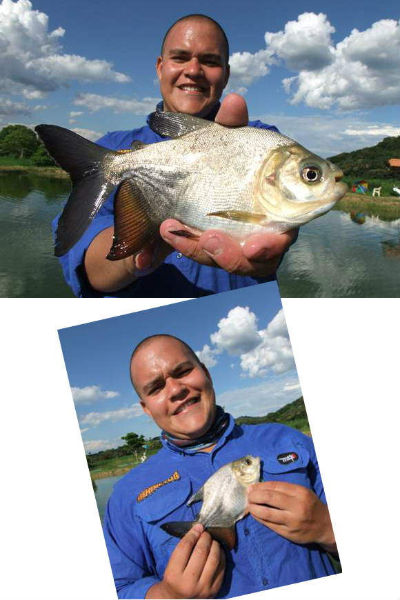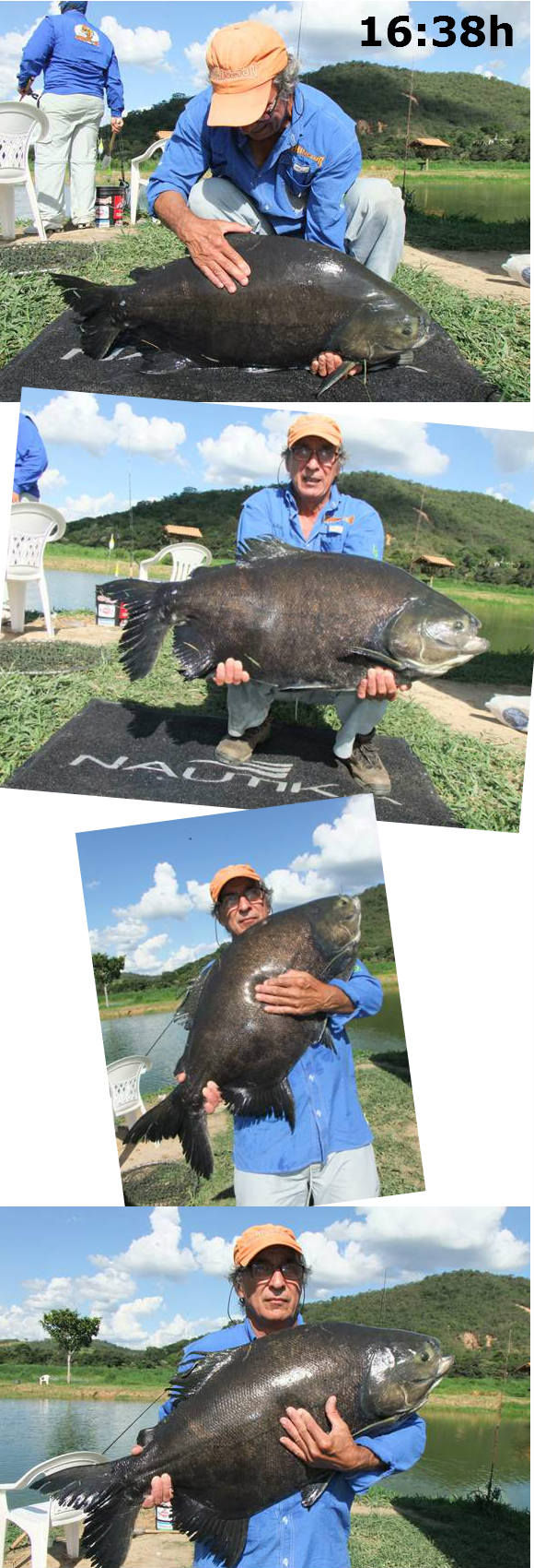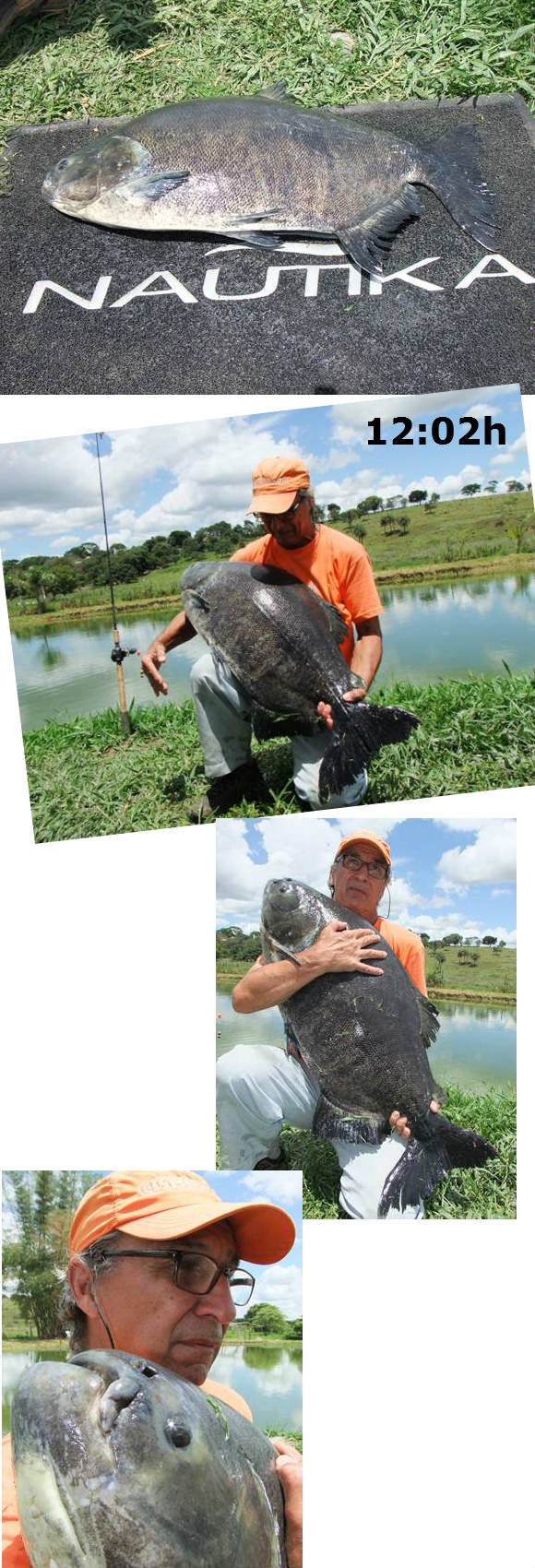 De brincadeira só a gente mesmo, porque com os tambas mineiros, não tinha brincadeira nenhuma, e os tambas de respeito iam saindo. Desta vez, até o funcionário do pesqueiro parou para ver nossas capturas, e logo o chamei para sair na foto com mais um tamba.