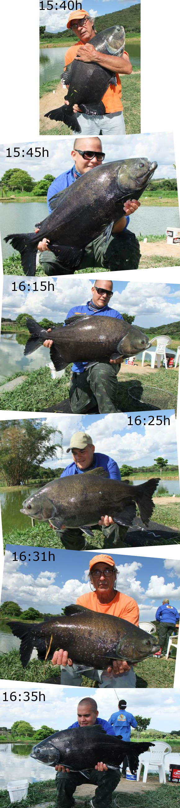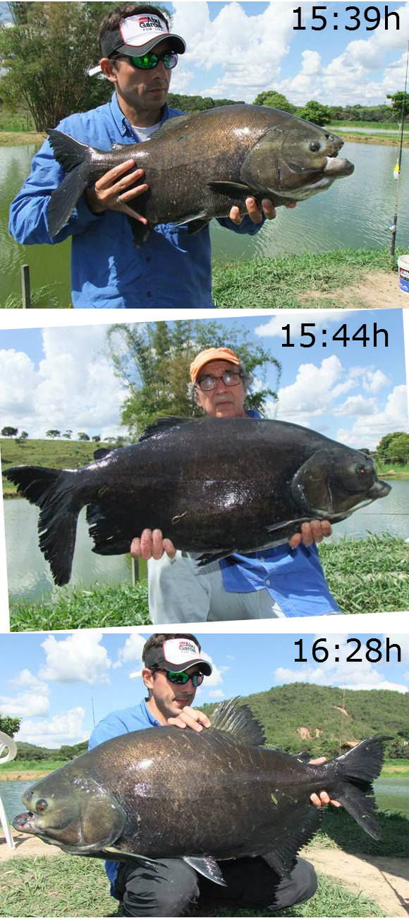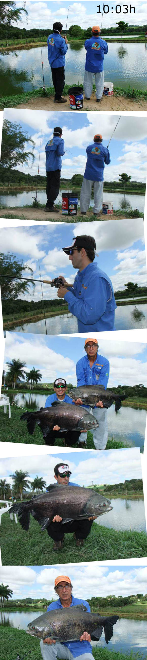 Paramos para o almoço, e já com dor nos braços, fomos degustar uma comida mineira. Após um belo almoço com direito a muitas opções tanto de comida quanto de sobremesas, voltamos ao lago, e já fomos cevando fortemente, porém desta vez os tambas estavam menos ativos e mais dispersos, pois demos alguns arremessos afastados da ceva e subiam apenas alguns peixes e logo paravam. Mesmo assim, conseguimos mais algumas capturas.