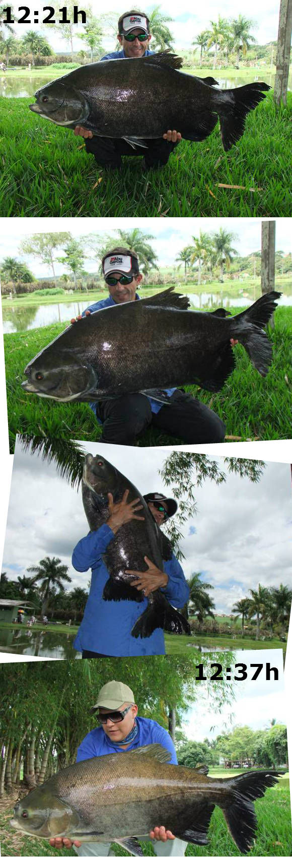 Os dubles eram constates, porém, no 4 Estações alguns peixes brigam muito, e outros um pouco menos, dificultando a retirada na mesma hora. Mas desta vez deu certo e olha esse excelente Duble que o Marcio e Adimir fizeram. Começamos a fisgar alguns exemplares na superfície com os evas.