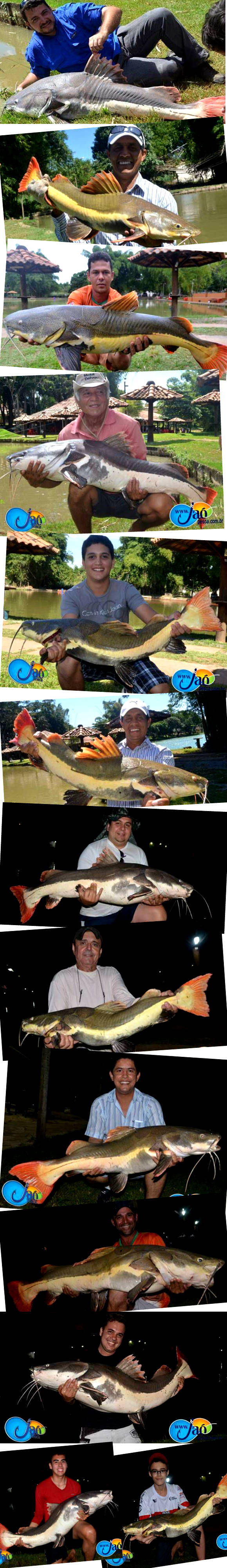 E abaixo, vamos mostrar algumas das Pirararas que já foram fisgadas no Jaó, mais antes disso, aqui vai algumas dicas para conquistar essas gigantes. A começar pelos equipamentos, que aconselhamos linhas acima de 0,60mm pois como trata-se de um lugar onde reside grandes pirararas, temos a probabilidade de engatar uma gigante e acabarmos frustrados por utilizar um equipamento inapropriado, além da linha, varas acima de 40lbs já oferecem uma boa resistência, podendo ser até 80lbs, pois facilitará a retirada do peixe, diminuindo o tempo de briga e consequentemente o stress do peixe.