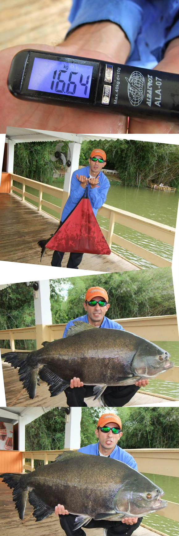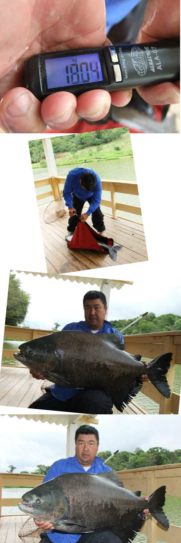 Na sequencia foi a minha vez de fisgar uma belo Tambacu de 16kg, também no pão flutuando. Os peixes estavam bem ativos.