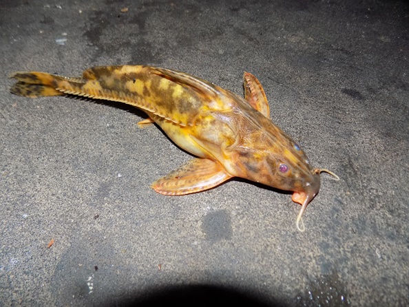 Fim do primeiro dia, mas eu não parei, durante a noite, na chalana mesmo, fiquei brincando com uma tralha mais leve, usando a Massa Japonesa do nosso amigo Renato. Várias pequenas espécies apareceram, provando que essa incrível isca nos pesqueiros, também da resultado na natureza. Armei também uma vara mais pesada com linha 0,52 mm e um sardinhão como isca, na esperança de pegar algo grande. A variedade de espécies me impressionou, algumas eu desconhecia.