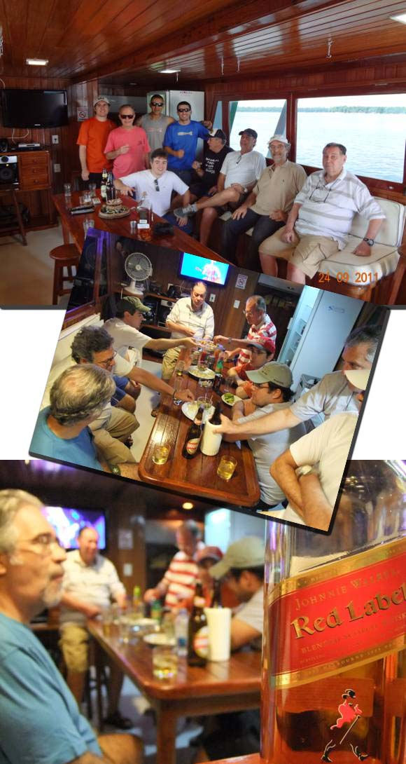 Depois de tudo arrumado, a tarde foi de muito bate-papo no Hall do barco, com direito a petiscos, bebidas e muitas histórias. Foi o momento em que todos os pescadores do grupo se conheceram.