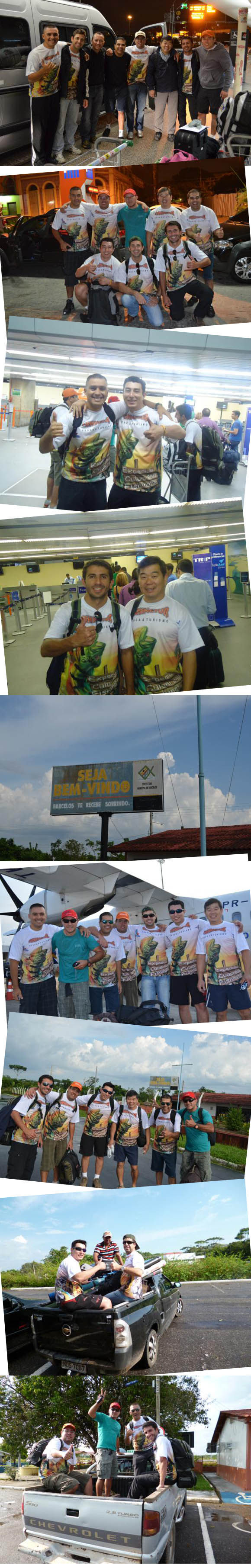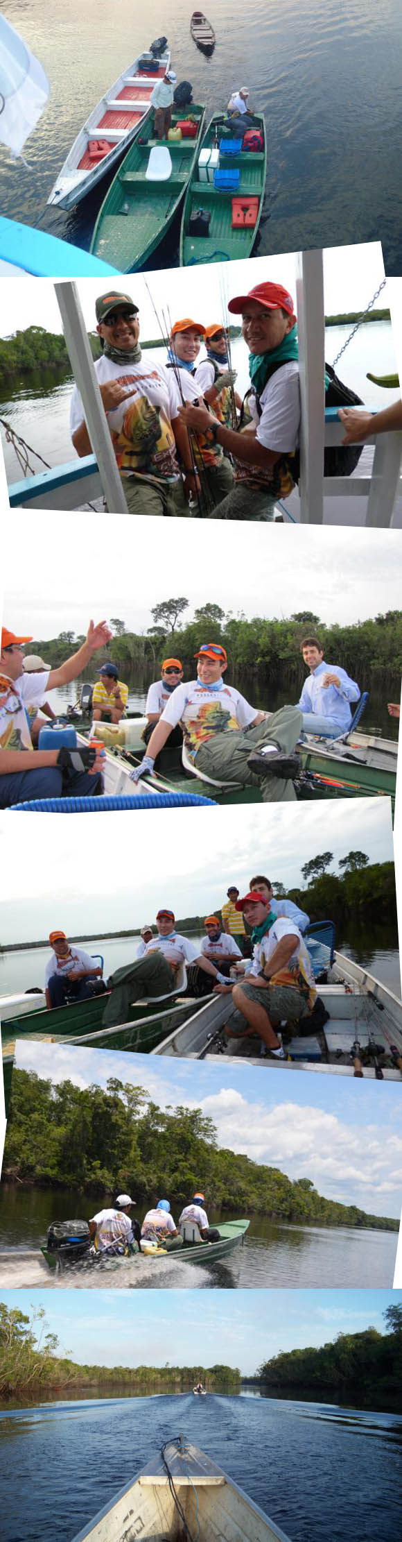 Definido o grupo, executamos alguns contatos com amigos locais que detém experiência de pesca na região e com os amigos moradores de Barcelos (Gadelha, Dino e o Sara) e após muitas analises e considerações à decisão foi de subir de Barco o Rio Cuiuni e o Rio Alegria até o limite do calado do Barco (Comandante Junior) e posteriormente partirmos para os acampamentos nos barcos menores e o mês escolhido foi setembro por estar no inicio da temporada 2012/2013. Confesso que uma pescaria com acampamento na selva requer uma logística detalhada e guias que conheçam muito bem a região e nessa aventura tivemos o total apoio e gerenciamento do Allen Gadelha e do guia Dinamar, mais conhecido como Dino e para vocês terem uma ideia, ficamos por mais de 4 (quatro) meses programando a estratégia da viagem e a Logística de alimentação, gelo, bebidas e combustíveis para que nada faltasse. Vale ressaltar, que nosso amigo Junior não mediu esforços e teve um papel importante e dedicação total nesse planejamento. Assim, após muitas reuniões, angustia, aquisições, ajustes e preparação dos equipamentos, confecção de camisetas, banners e bandeiras personalizadas, algumas noites sem dormir, muita adrenalina e expectativa, o grande dia chegou e partimos com imensa alegria ainda durante a madrugada para o Aeroporto de Guarulhos em São Paulo com a Van de nosso amigo Sérgio, para embarque com destino a Manaus e de lá seguimos no dia seguinte por voo da Trip para Barcelos e embarcamos no Táxi ecológico diretamente para o Porto. Era o início de nossa aventura.