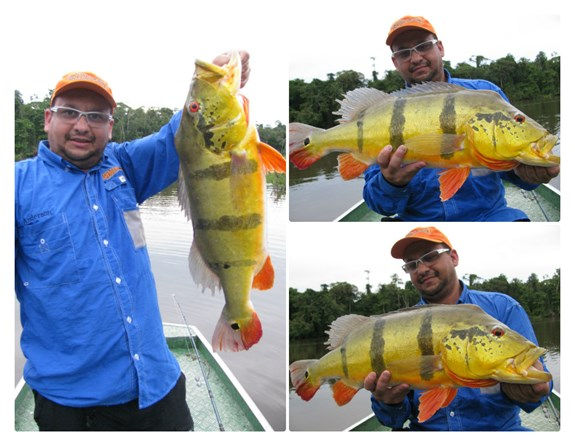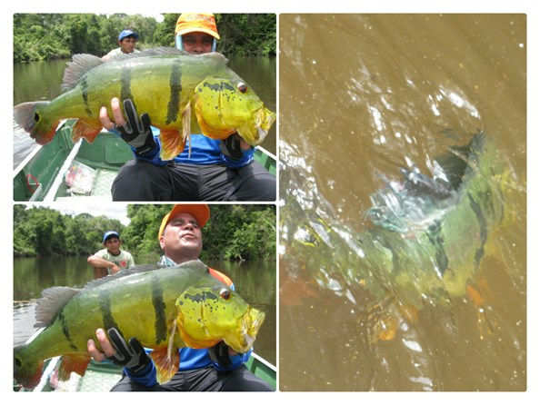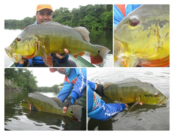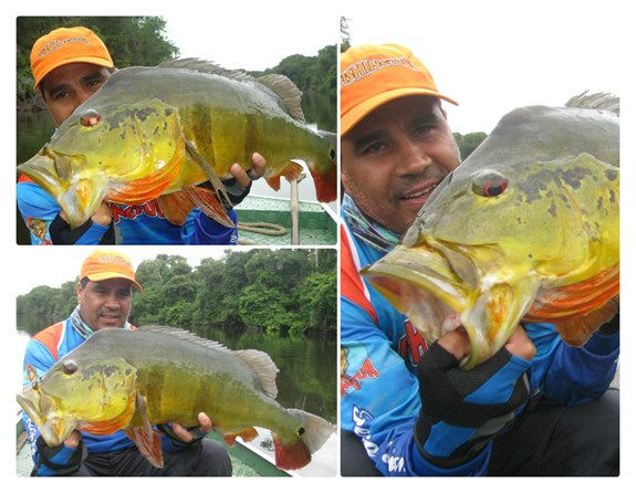 Nesses locais paradisíacos não sentimos sequer cansaço, mas executando entre 800 e 1.000 arremessos por dia, além de arrastar barcos e estar normalmente praticando a Pesca Esportiva com um sol acima dos 33 graus e um ambiente úmido como a Selva Amazônica que faz a sensação térmica em alguns períodos do dia passar dos 40 graus incomoda demais, mas nada disso nos impede muito pelo contrario motiva a buscar os belos peixes residentes do local. Este é o quintal dos amantes da Pesca do Tucunaré e olha ele aí novamente!!!