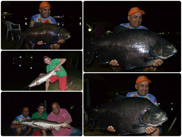No finalzinho da tarde e começo de noite fisgamos mais alguns peixes antes de ir embora. Eu peguei uma Pincachara na salsicha, um tambacu no queijo e o Júnior pegou um bonito exemplar na bóia torpedo com chicote de 1mt com um pedaço de mussarela.