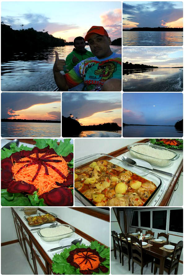 Voltamos para o barco com um bonito e encantador pôr-do-sol e como sempre muito bem recepcionados com um belo jantar no Kalua. Na verdade, assim que chegamos no barco, são servidos porções de peixes, frios, banana frita, muita cerveja e muitas mentiras. Aí sim, um belo jantar.