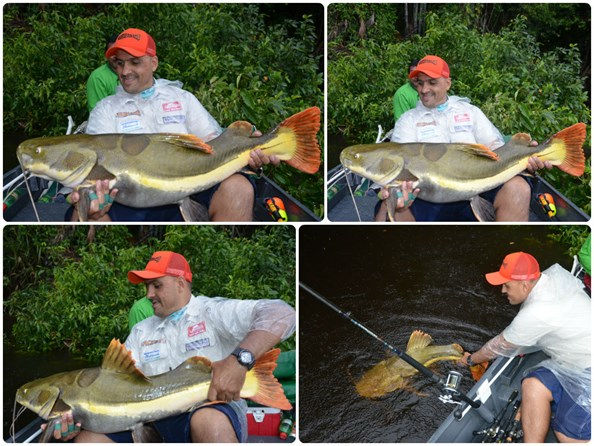 Tranquilamente encostamos o barco e ele com o remo foi procurando a linha, galhos, até que chegou até onde o peixe estava. Eu fui com o alicate e consegui segurar o bichão. Soltamos o snap e o peixe ficou livre. Um bonito exemplar do Fishingtur com a Zagaia. O momento da batida do peixe até ele parar de puxar a linha é muito rápido, mas para o pescador que está em pé na ponta do barco vivenciando isso, esses segundos parecem minutos. A descarga de adrenalina é tanta que as pernas tremem, o coração acelera, realmente algo indescritível.