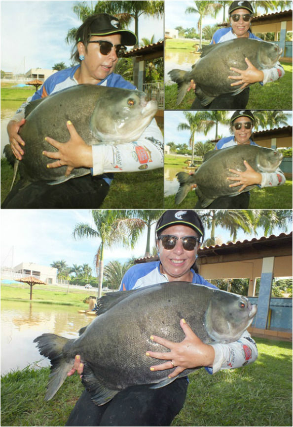 Mais um belo tambacu registrado e devolvido a água. Os peixes começaram a subir mais na superfície e atacar com mais voracidade as iscas principalmente o pão/ pão de queijo. E quando de repente vimos uma explosão no pão de queijo que tínhamos apoitado, que adrenalina, as emoções foram a mil, pela explosão estava na ponta da nossa linha com certeza um bitelo. E a briga se iniciou muito pesada, e claro mais no fundo do lago e com grandes tomadas de linha, em que fazia a carretilha cantar com vontade. E logo na primeira vez que ele subiu a flor da água, podemos ver que era um belo e grande Tambacu. E adrenalina aumentou ainda mais, e depois de uma briga cautelosa e sem pressa eis que este belo Tamba sai para nossos registros.