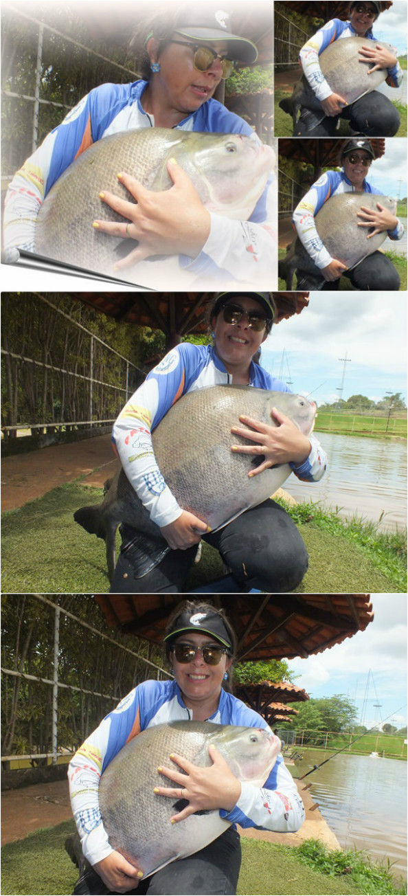 Antes de fazer outro arremesso com pão decidi trocar a isca da nossa vara de espera por um pedaço de mussarela, isca que costuma dar muito resultado, e que poderia atrair muito os peixes de couro que residem neste lago. Deixei a vara na espera e continuei a pesca. E quando eu ainda estava iscando o pão vejo nossa vara se emborcando toda. Corri, fisguei e iniciei mais um briga de peso e um peso que se concentrava todo no fundo, várias opções passaram em minha mente, como um jundiá, uma cachapira e até mesmo uma bela pirarara, no entanto, para minha surpresa o comedor de mussarela e brigador no fundo do lago era outro enorme tamba, vibrei de emoção quando ele submergiu pela primeira vez na flor da água, que Tambacu lindo!. Após uma briga intensa e pesada eis que ele veio para o registro das lentes do Fishingtur.