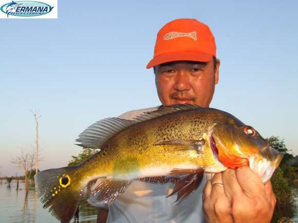Mediante a grande quantidade de peixes, em alguns momentos testamos algumas iscas e quase sempre com algum resultado. Desta vez a isca Perversa da Borboleta garantiu mais um Tucunaré.