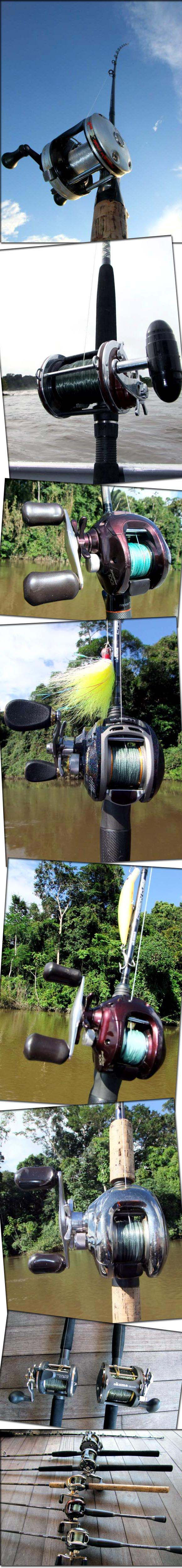 EQUIPAMENTOS Eu e o Júnior usamos diversos tipos de equipamentos, entre eles: -Vara Amazon Tucuna 36 lbs - Fleming -Carretilha Abu Garcia -Linha mono 0,45mm Asso Super