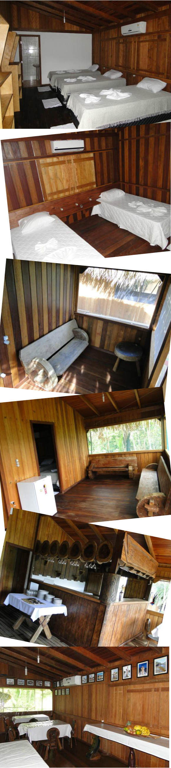 A Pousada é composta por apartamentos duplos e apartamentos quádruplos, todos com ar condicionado split, banheiro privativo com chuveiro quente, camas BOX, armários e criado mudo individuais. No refeitório, um grande bar a disposição, internet, telefone global e ar condicionado split. Todos os cômodos da pousada são isolados por tela para proteger o cliente de eventuais insetos. Os barcos são de 5,5m com duas plataformas, cadeiras giratórias estofadas, motor elétrico e motor de popa de 30hp.