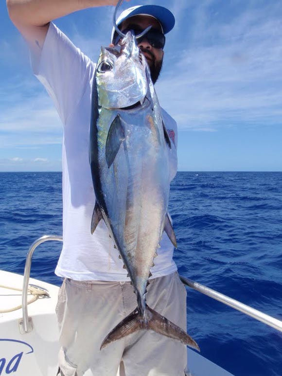 E nessa semana que estávamos pescando, todos os barcos de pesca esportiva tinham um acordo, tudo que fosse pescado na medida seria doado a Casa João Pedro, uma entidade que ajuda crianças carentes em salvador. Por este motivo é que alguns peixes aparecem nas fotos presos pelo bicheiro. Bom pessoal, essa com certeza foi a melhor pescaria da minha vida, e realmente não conseguia nem levantar o braço ao final do segundo dia, brigar com um atum de 30 quilos no meio do oceano não tem preço, ver o voo de uma wahoo de 20 quilos é uma cena que nunca mais vou esquecer. Quem tiver oportunidade com certeza não vai se arrepende.