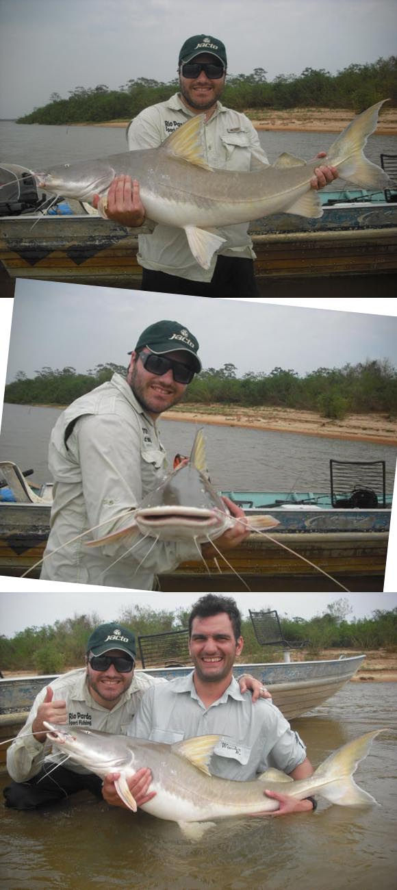 Por incrível que pareça, na primeira jogada, na primeira hora de pescaria, capturamos o primeiro exemplar de Piraíba, um lindo filhote com seus 1,30 m de comprimento. Nesta hora só pensei, "Meu Deus", vamos arrebentar na semana, to até vendo rsss..