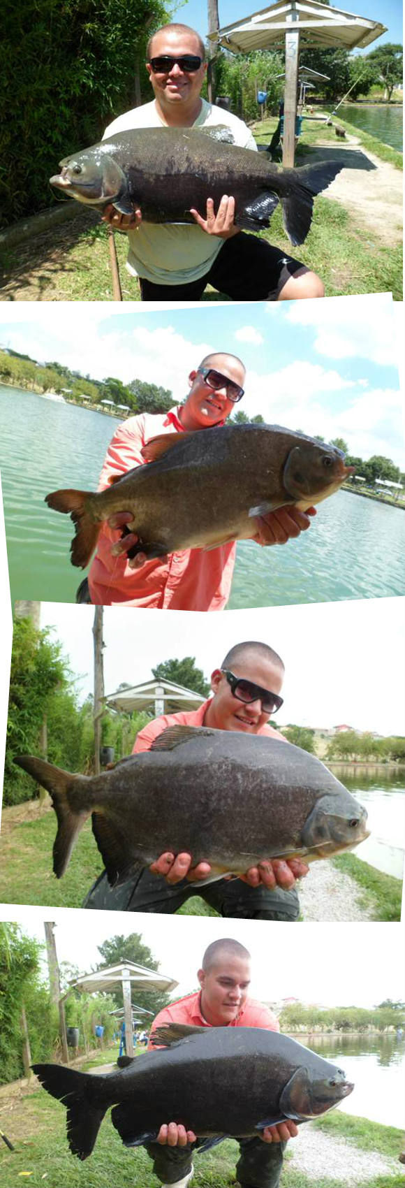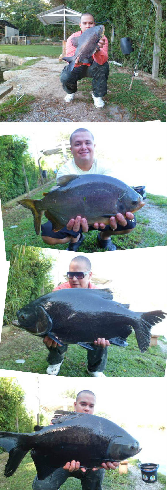 Já com os equipamentos montados, começamos a cevar bem no centro do lago, e logo na terceira copada já começa uma grande movimentação de grandes tambas na ceva. Aí foi só mandar a famosa “Antena” das Bóias Barão, que os tambas e os pacus já deram as caras !