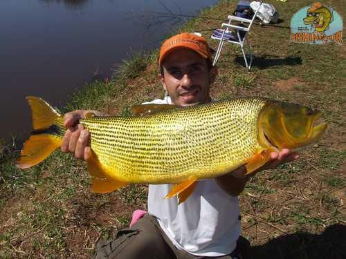 Os Dourados da Miachon brigam demais. Tem a coloração forte, bem diferente dos outros pesqueiros. Isso prova a qualidade da água.