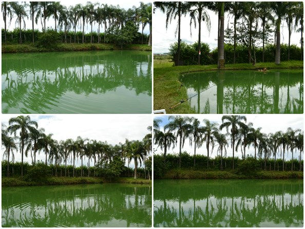 O pesqueiro trabalha com três lagos, sendo um para a pesca por quilo e dois para a esportiva. Seguimos para o último lago, sendo este o principal. Um lago relativamente pequeno se comparado a outros pesqueiros, mas um lago muito tranquilo e com uma ótima estrutura de margem, com muita grama, coqueiros, frutas como goiaba e acerolas e o que eu achei mais interessante, foi em não poder pescar em uma das margens, obrigando todos os pescadores em arremessar em direção a margem oposta, com algumas árvores e vegetação alta. Local onde se encontram a maior quantidade dos peixes.