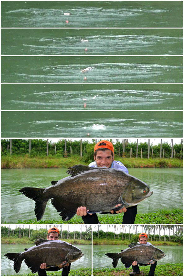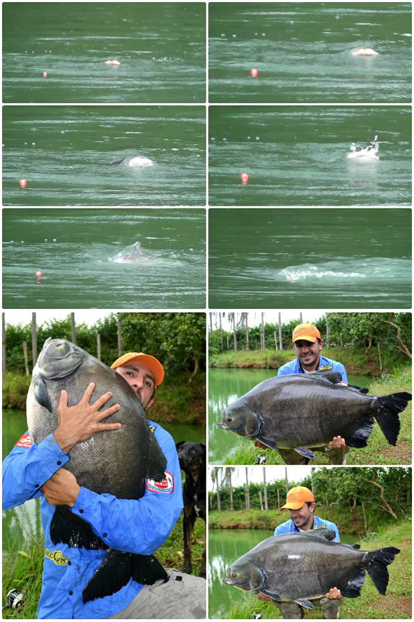 Uma briga forte, com fortes puxadas de linha, já denunciava ser um peixe bom, um grande tambacu, mas depois de algumas rebojadas, reparamos em uma mancha branca na água o que nos deixou em dúvida, mas para nossa surpresa era um lindo Tambacu branco, lindo !!!