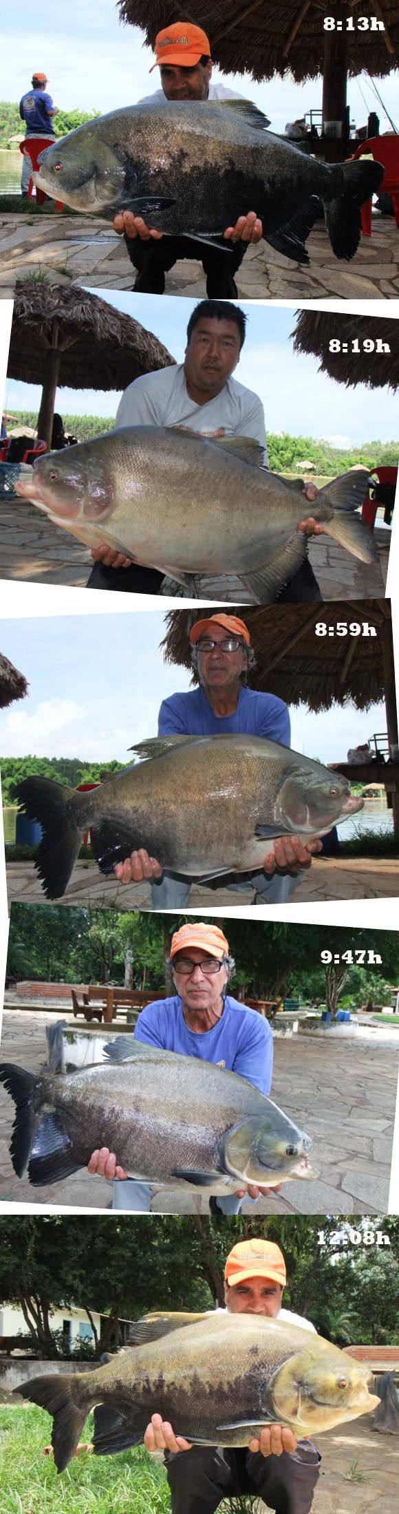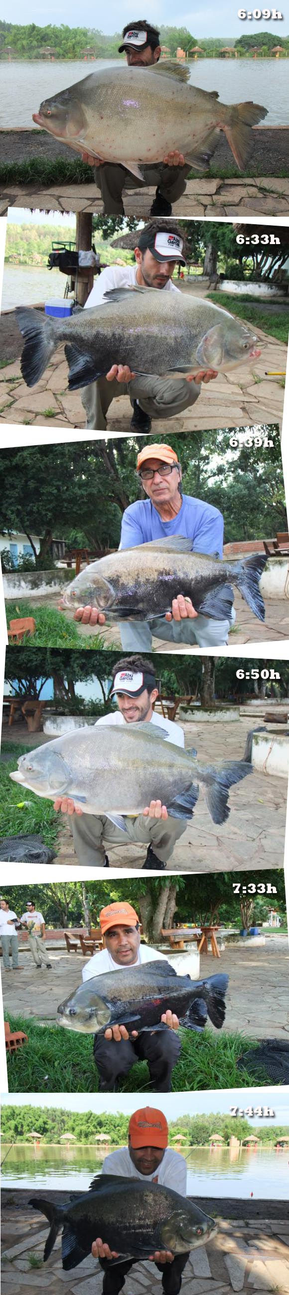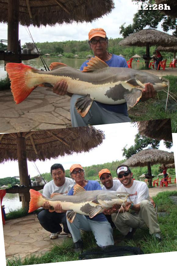 Com essa sequência de Pirararas e acredito que pela grande festa que fizemos a beira do lago, elas deram uma trégua e voltamos a nossa atenção para os redondos com salsicha boiando/flutuando arremessando cerca de 20 a 30 metros da margem. Não conseguíamos avistar nada, apenas escutávamos as explosões e em seguida a linha esticar e na dúvida mandávamos fisgada neles e muitos foram capturados desta forma. Esse pesqueiro é ou não é um favo de mel?!?!? Vale lembrar que uma das Pirararas foram fisgadas nesta modalidade de salsicha flutuando a 20mts da margem e depois outro ataque de Pirarara na salsicha flutuando, mas por estarmos com equipamentos leves, a mesma levou toda a linha para baixo do restaurante facilmente.
