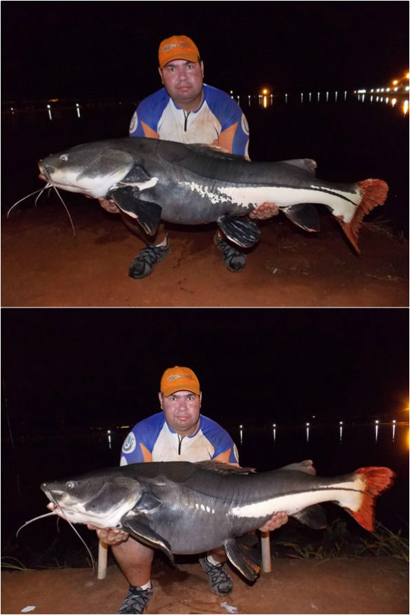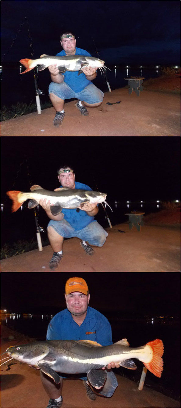 Segunda noite: As iscas usadas foram: tilápias, lambaris e tuviras vivas e pedaços grandes de tilápias. A primeira a aparecer foi uma das famosas “boquinhas”, difícil alguém ir no Pescar e não fisgar elas pois são famintas.
