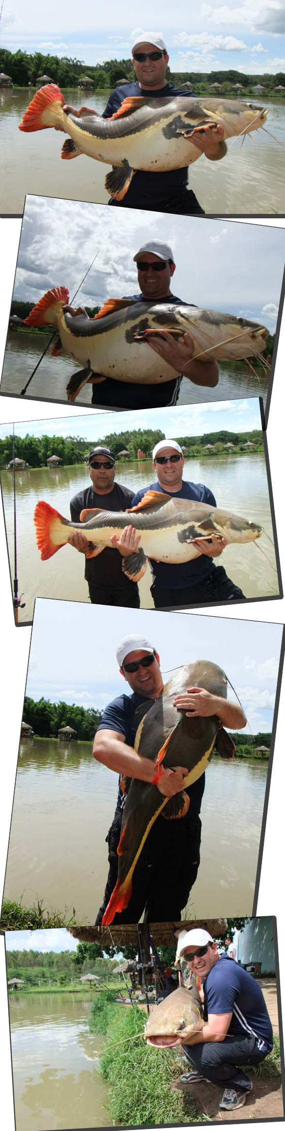Por volta das 10h30min os tambas pararam de subir na ceva e como estávamos ao lado do restaurante do pesqueiro o Marcio novamente observou os movimentos das Cachapiras e lançou na espera uma salsicha boiando e após perder um grande exemplar, outro foi fisgado e depois de uma grande briga e um cabo de guerra para tirá-lo do píer do restaurante o belo exemplar posou para foto.