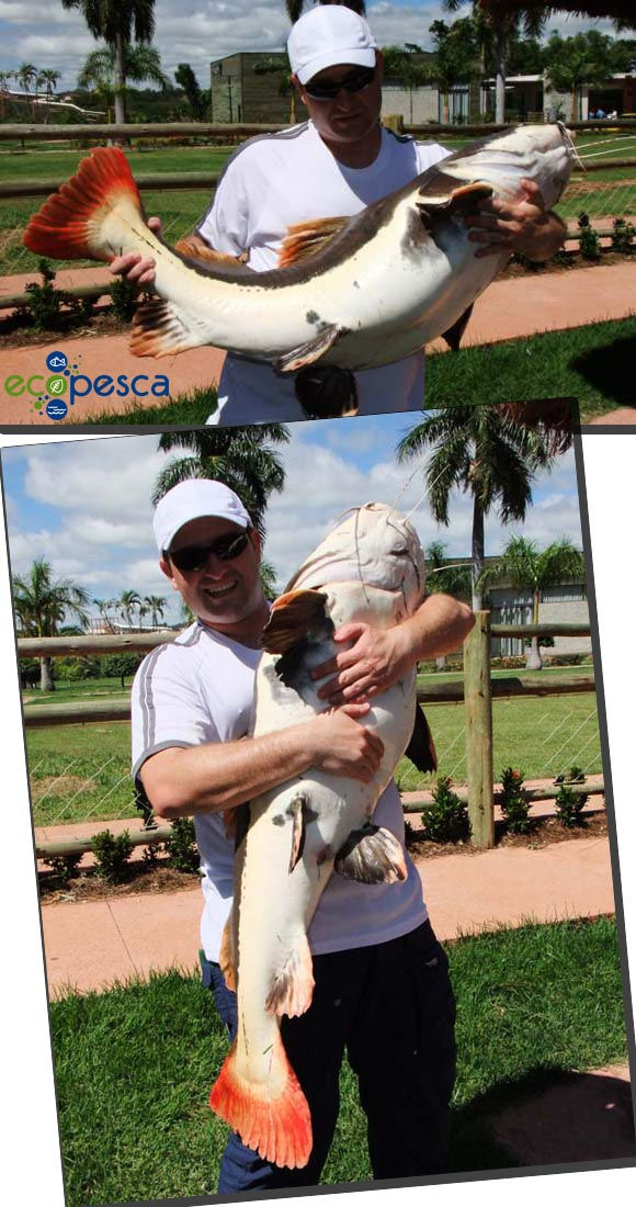 O negócio no Eco Pesca é frenético e após esse dublê de tamba outro dublê de Pirarara e Tambacu com o amigo David é feito, no Eco Pesca o lago tem grande profundidade (até 8 metros) as pirararas brigam mais na vertical do que na Horizontal que estamos mais acostumados em pesqueiros. O Eco Pesca se assemelha muito as pescarias em ambiente natural.